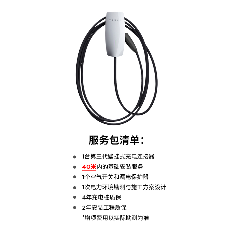 Tesla Tesla charging pile electric car home charging service pack (GB third generation-40 meters installation)