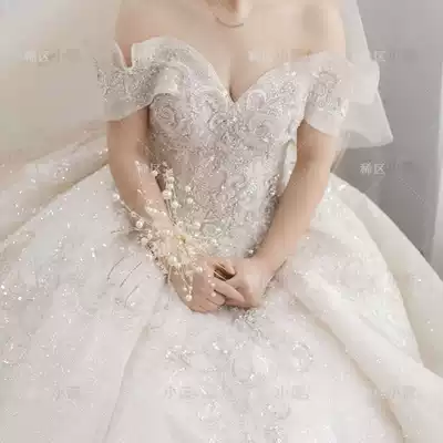 One shoulder main wedding dress 2021 new bridal forest Super fairy dream starry sky big tail European French female