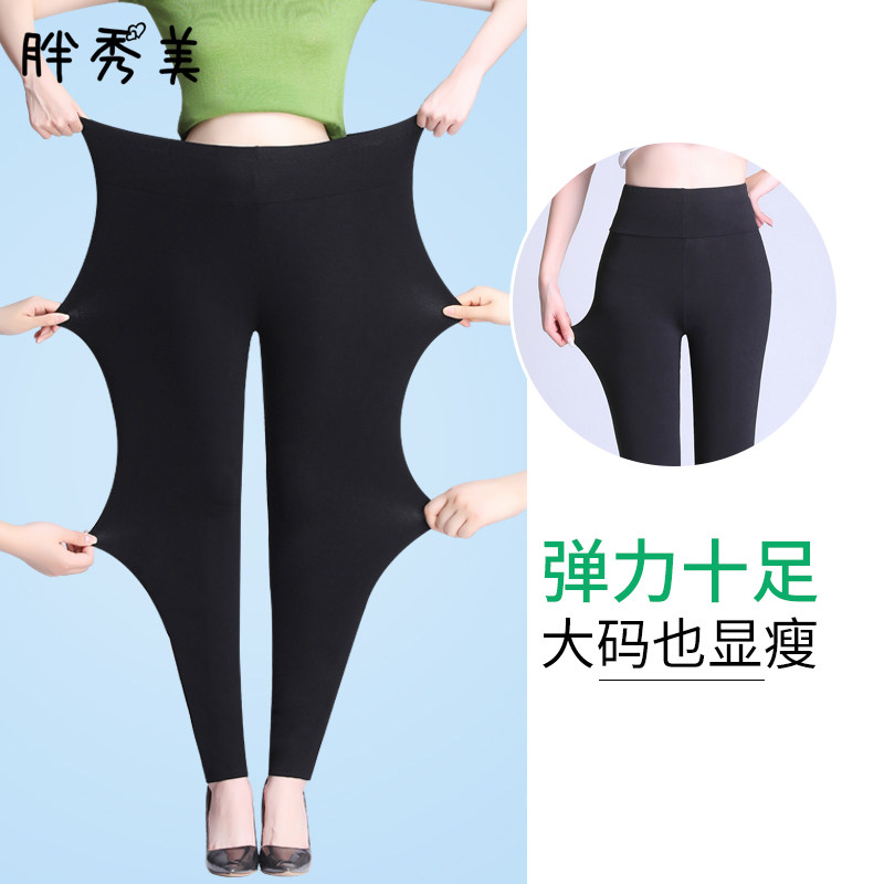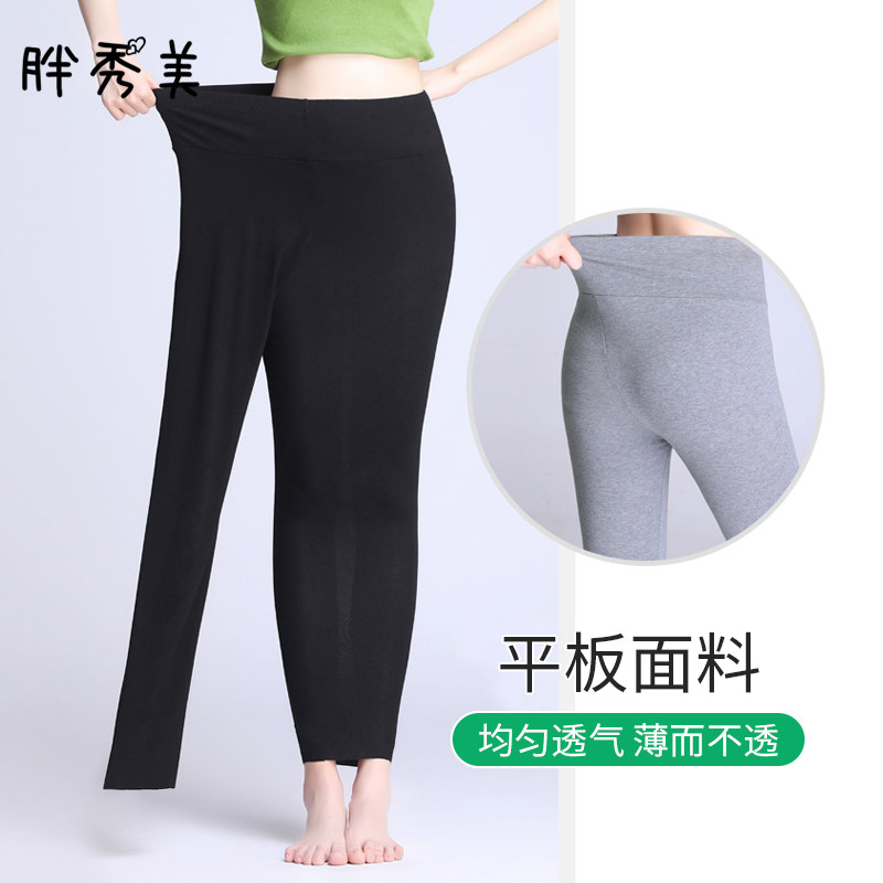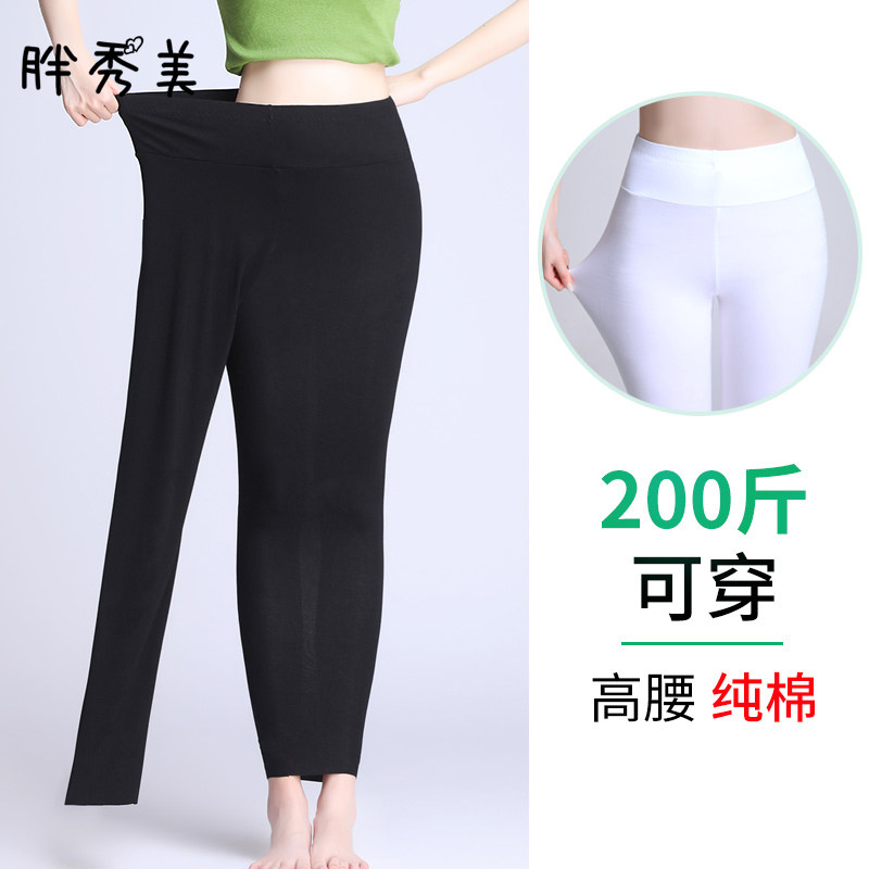 Summer thin section large size pure cotton high waist leggings women's outerwear looks thinner 200 catties fat MM long johns spring and autumn nine pants