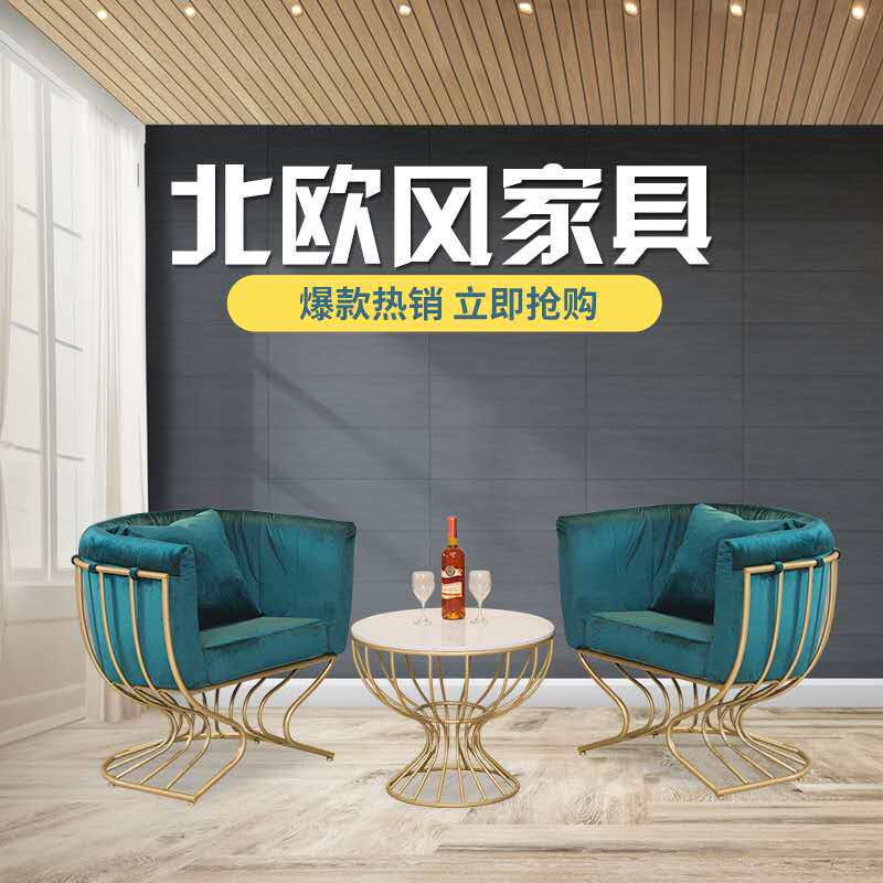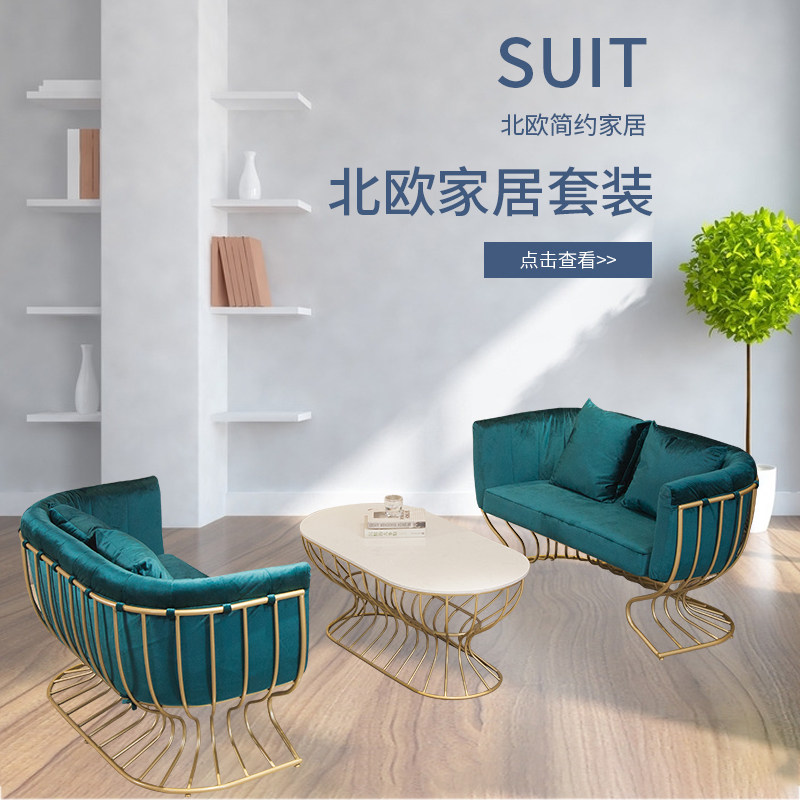 Nordic style furniture simple creative modern light luxury small apartment beauty studio coffee table fabric sofa combination