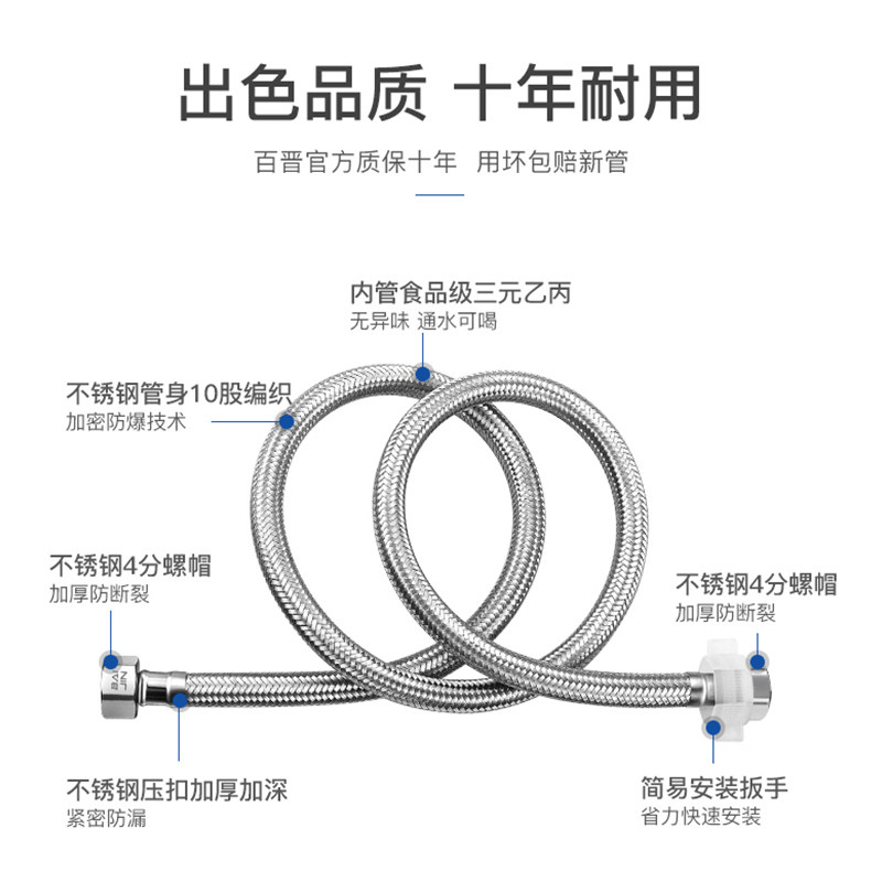 D bellows explosion-proof toilet lengthened 4 sub-water pipe cold and hot water woven tap into and out of metal hoses for home