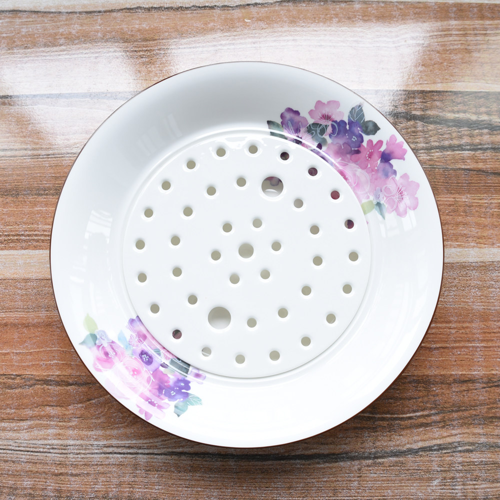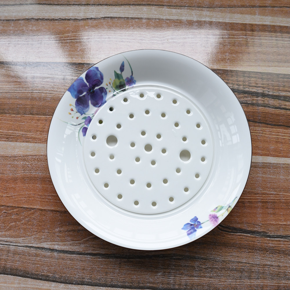 Bone China Home eating dumpling plate Fruit drain plate Ceramic daily water dish Large soup bowl Japanese flower creativity