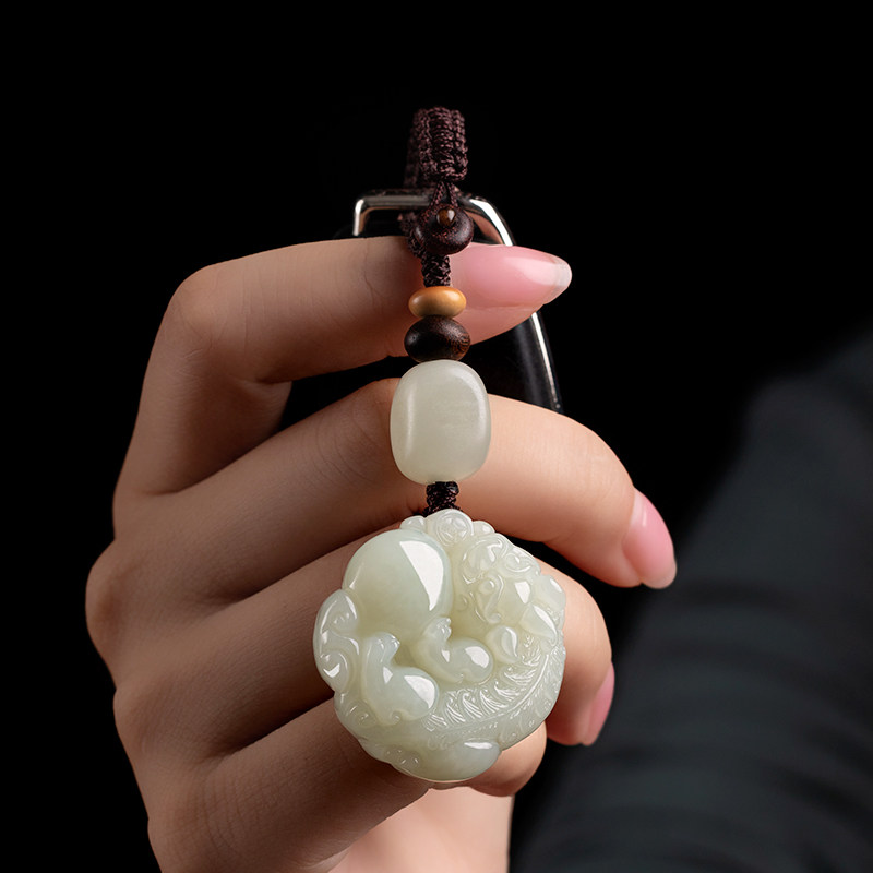 Park House Natural and Tian jade Jade Leopard Leopard HOLDING BALL CAR KEY PENDANT SOURCE Key Buttons High Gear Gift Men and Men-Taobao