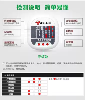Bull plug power supply detector Ground line polarity test Electrical test Electrical socket circuit phase detector