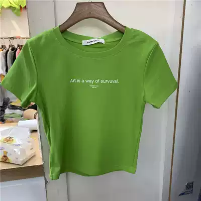 HAPPY sweet summer white small letter short T-shirt women tight short sleeve Dew belly button bottom student small T