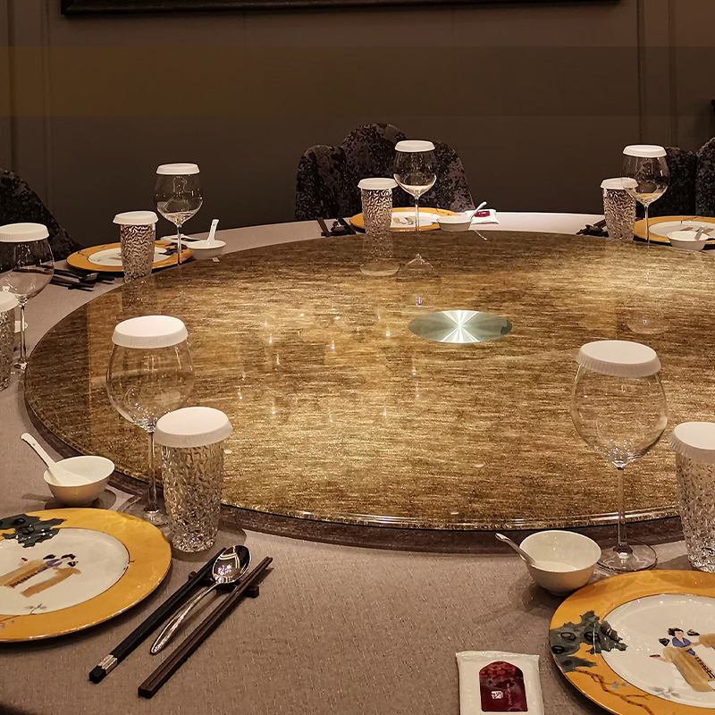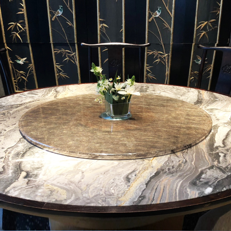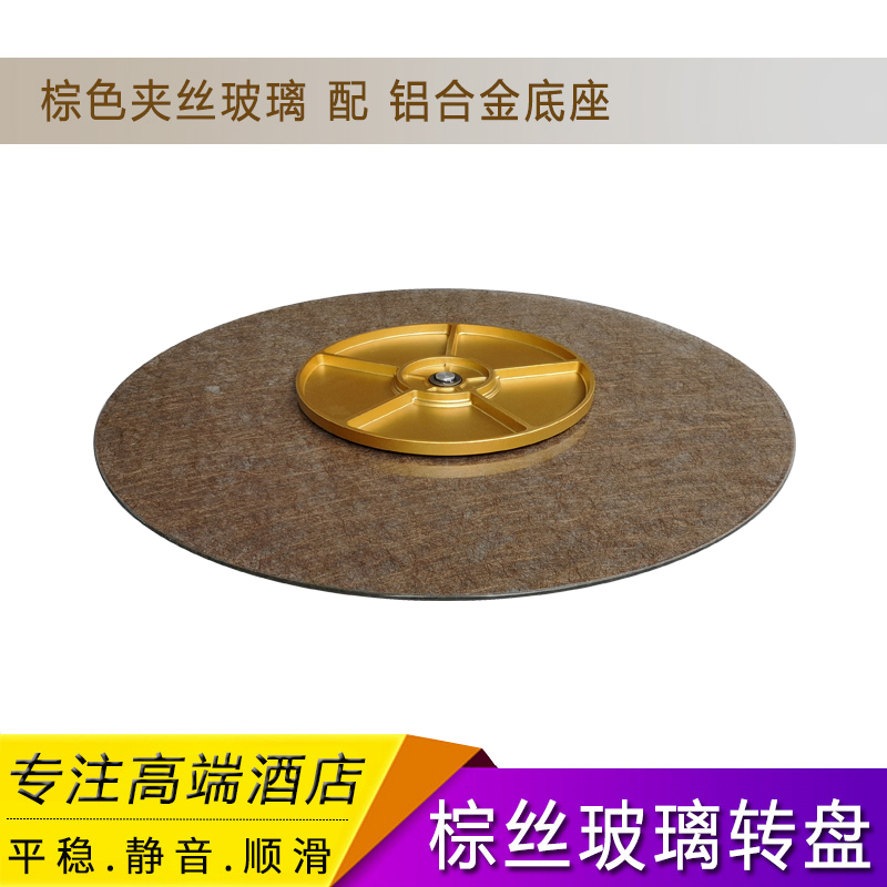 MA81 brown tea colour silk tempered glass furniture dining room hotel large round table rotary table clamping rubber standard aluminium alloy turntable