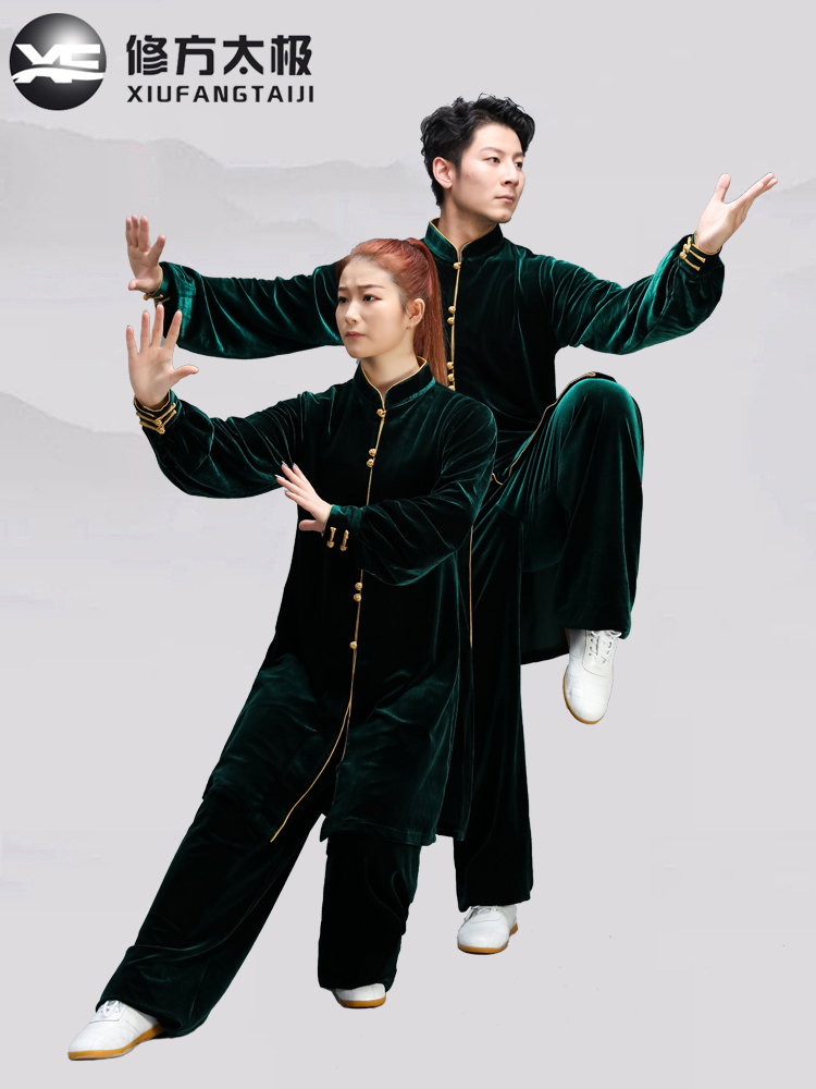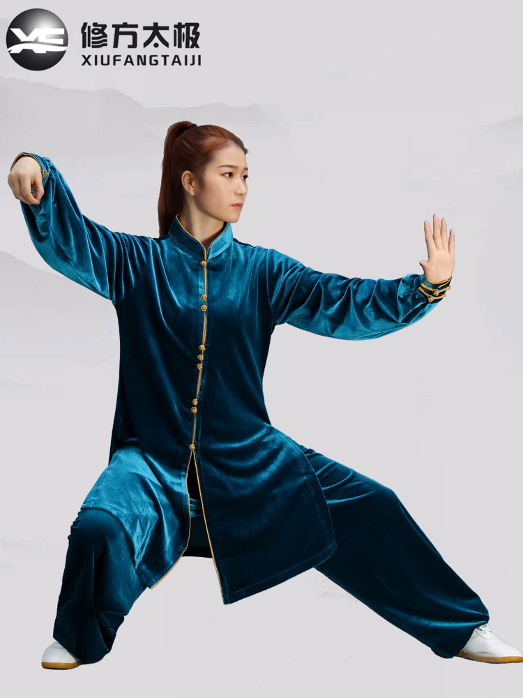 Golden Velvet Tai Chi Suit Women's South Korea Suede Taijiquan Costume Men's Tai Chi Practice Martial Arts Suit China Wind Performance Suit