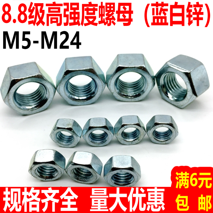 8 - level high - strength nut screw hardened hexagon nut foreign nut six - square nut standard parts