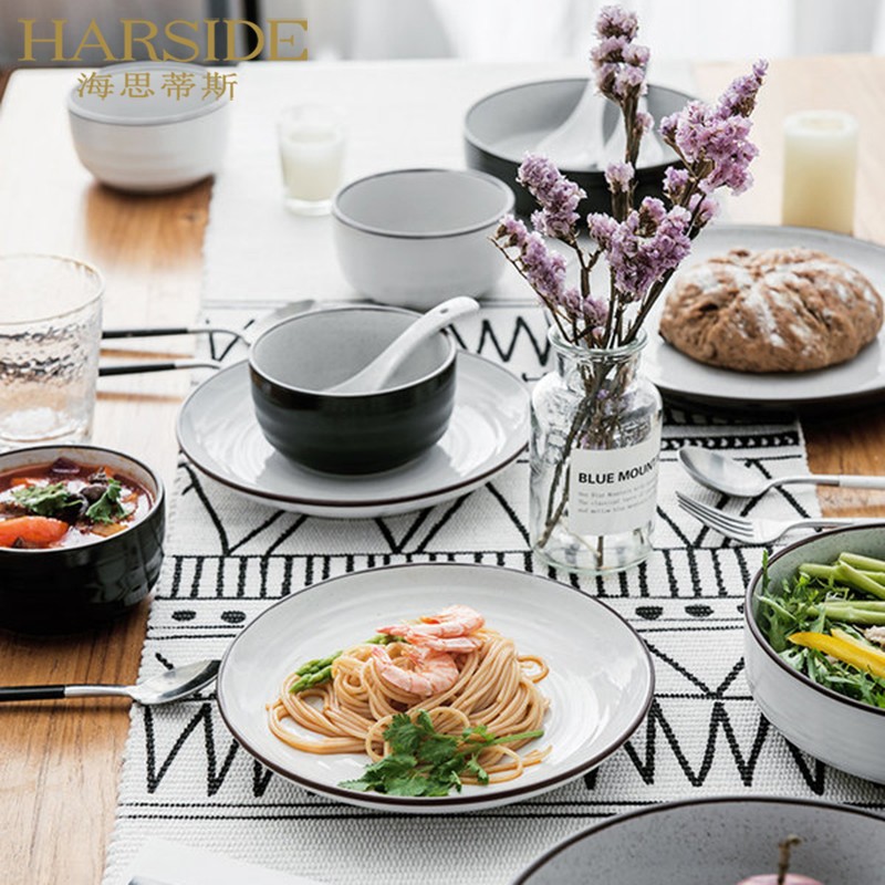 5-inch rice bowl white 7-inch medium soup bowl white 8 5-inch large soup bowl white 8-inch plate white 10-inch plate white small spoon white (two packs) 5-inch rice bowl black 7-inch medium soup bowl black 8 5-inch