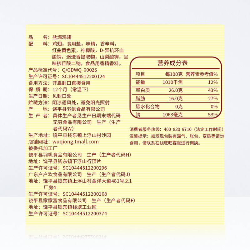 Infinite Salt Baked Chicken Wings 186g Braised Cooked Chicken Legs Net Red Small Snacks Casual Snacks FCL Gift Box