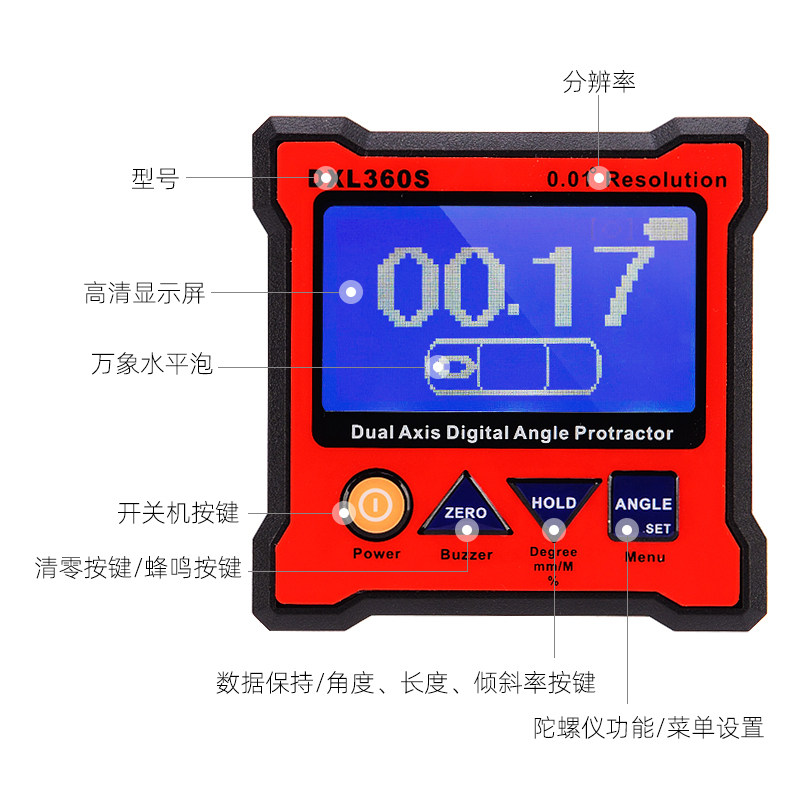 Jingyan electronic level meter double-axis high-precision lithium battery digital display angle ruler multi-function inclinometer box wall-mounted meter