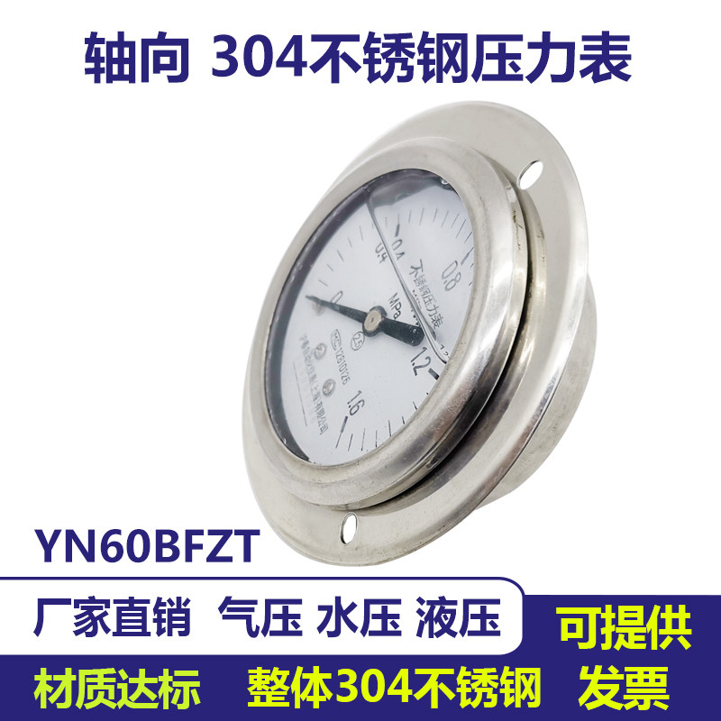 304 stainless steel pressure meter YN60BFZT axial with side air pressure meter water pressure gauge hydraulic table steam
