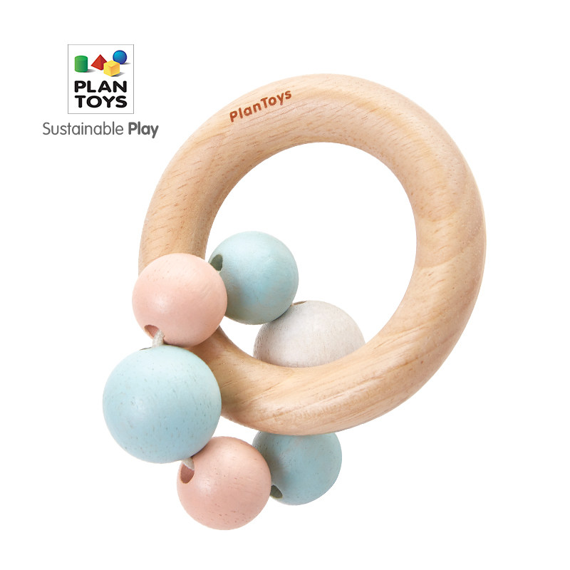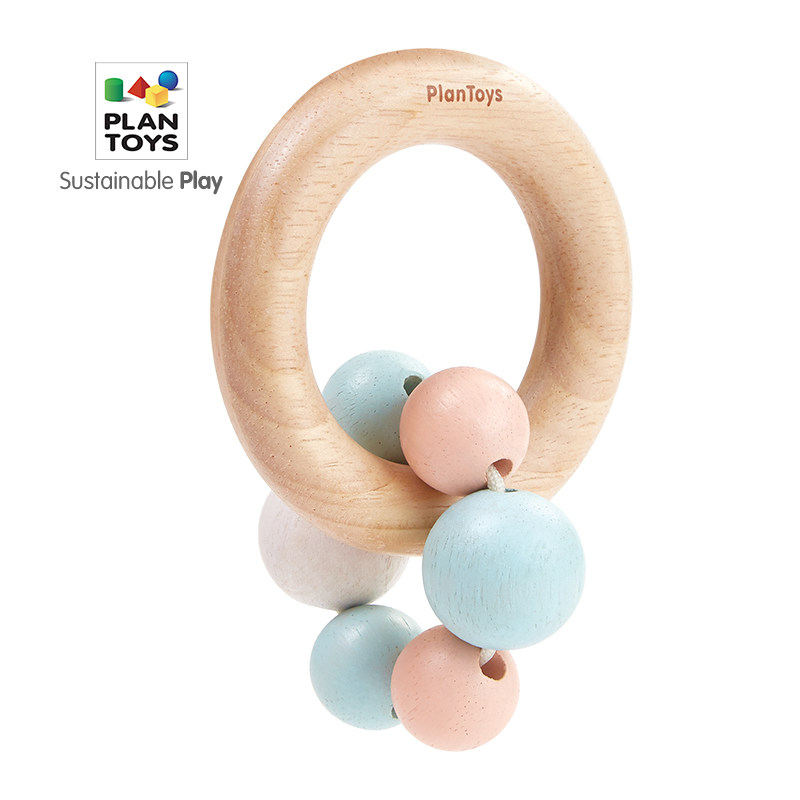 Imported PlanToys5262 Wooden Strings Beads Hand Rattle Baby Baby Pacify Tease Toys