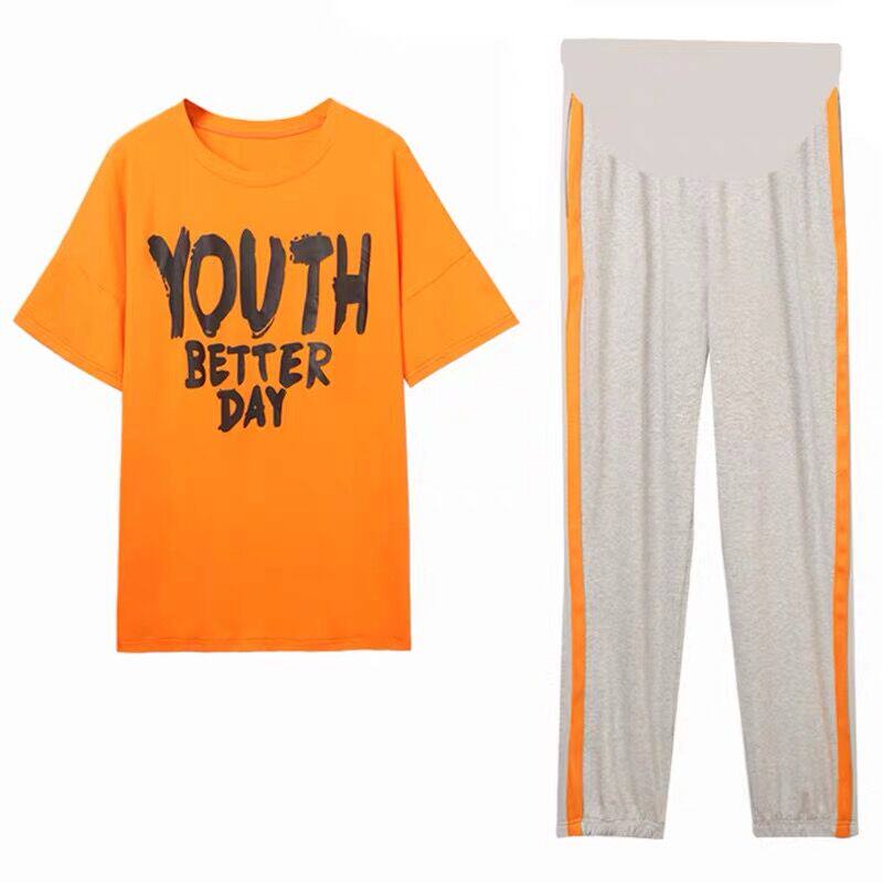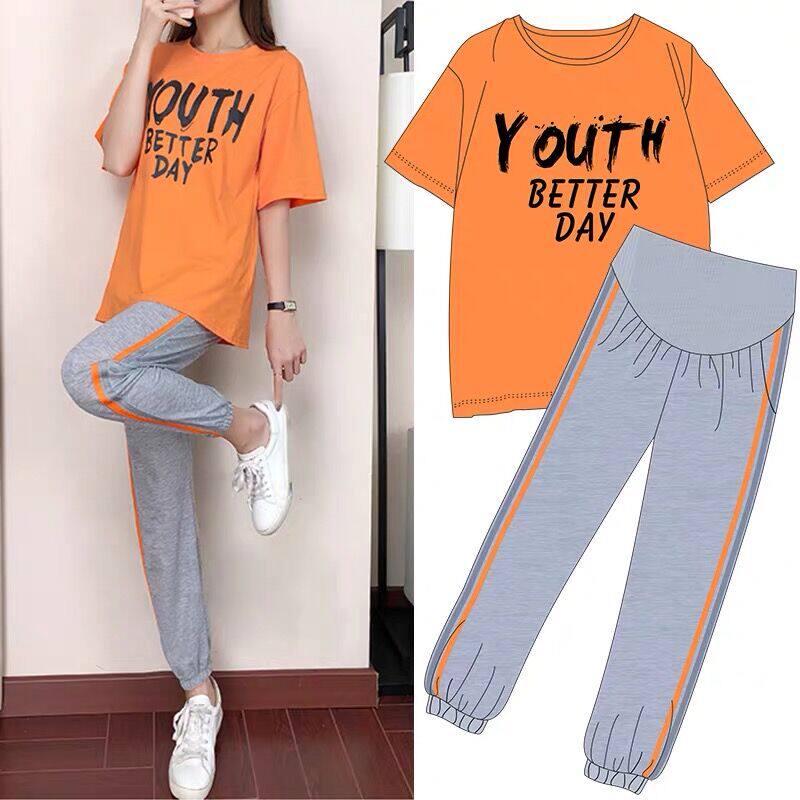 Pregnant Woman Spring Summer Suit Fashion Out of Exodus Spicy Moms Tummy Tummy Personality Summer Net Red Sports Two Suits