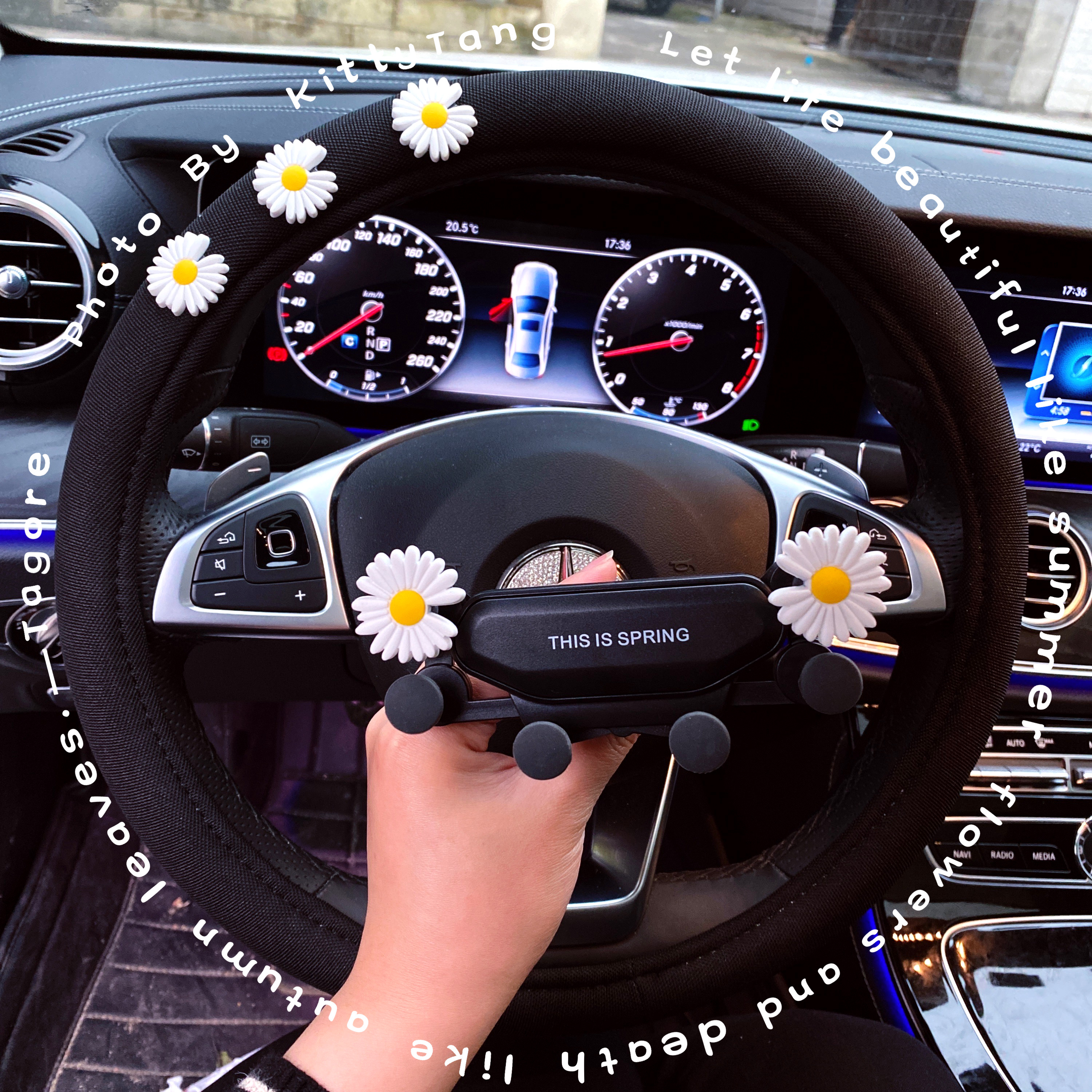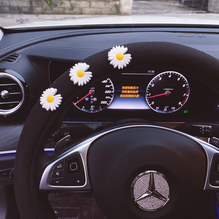 Car On-board Summer Mini Daisy Flowers Universal Personality Steering Wheel Sleeve Woman Breathable Universal Non-slip Steering Wheel Woman
