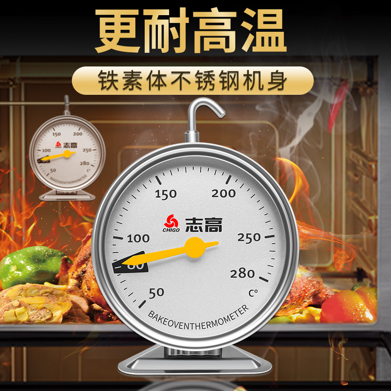 Oven thermometer - high-quality ferritic stainless steel, more resistant to high temperature, can be in direct contact with food, food thermometer (black) to measure water temperature, oil temperature, milk temperature, baking, etc. Battery delivery
