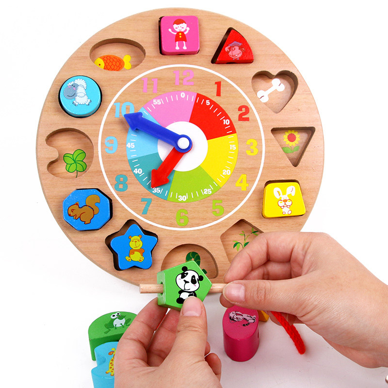 1-2-3 1-2-3-year-old children's clock strings Pearl building blocks hand-eye coordination fine action training to wear rope puzzle early teaching toys
