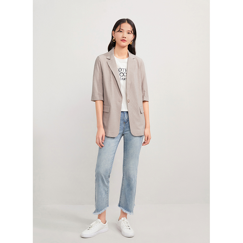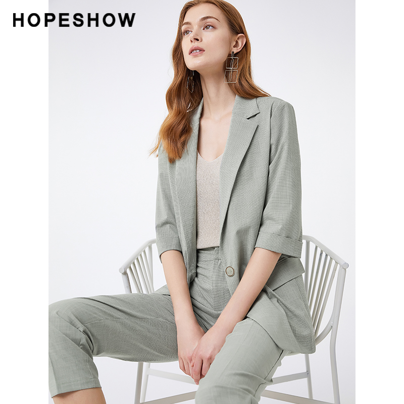 Red sleeve hopeshow plaid suit summer new women's clothing lapel five-quarter sleeve temperament one button professional jacket