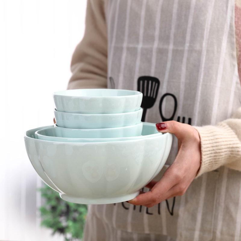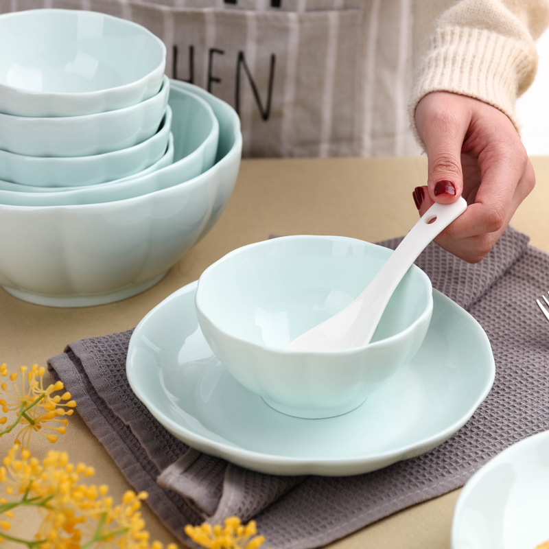 Pink pumpkin 2 bowls 2 plates 2 chopsticks Cyan pumpkin 2 bowls 2 plates 2 spoons 2 chopsticks 1 soup bowl soup spoon Blue pumpkin 2 bowls 2 plates 2 chopsticks White pumpkin 2 bowls 2 plates 2 spoons 2 chopsticks 1 soup bowl 1
