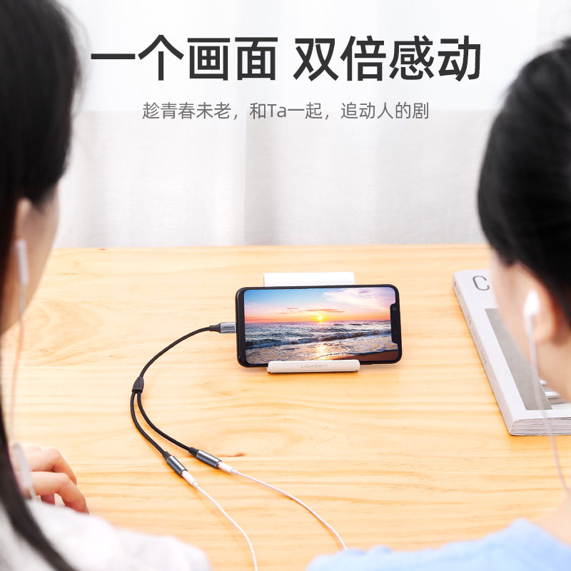 Green Union typec headphone adapter double 3 5mm connector Android phone 10% Two audio line two-in-one conversion