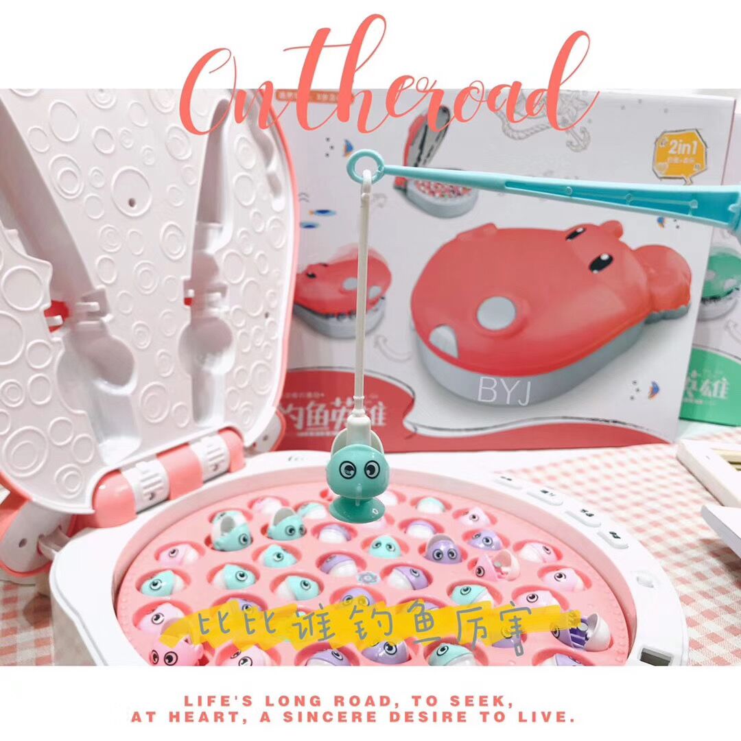 Children fishing hero hippo Tiaoyutai Magnetic new cute river Horse styling lid set containing fishing rod