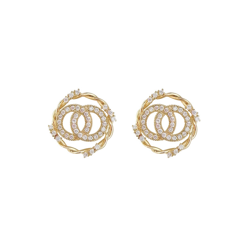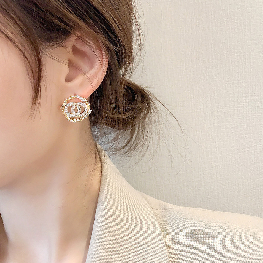 Earrings South Korean gas light extravaganza with small and fragrant wind double C ear pin 2022 New tide 925 pure silver ear clip without earbugles