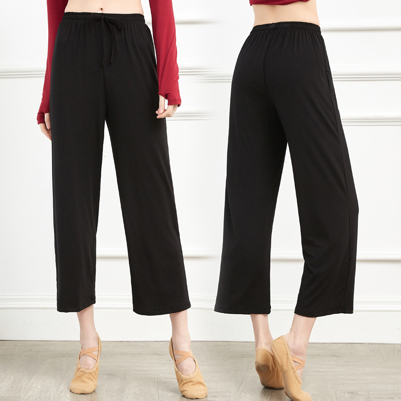 Dance Suit Women Modale Straight Barrel Pants Yoga Pants Square Dance Pants High Waist Loose Large Size Black Color slim casual pants