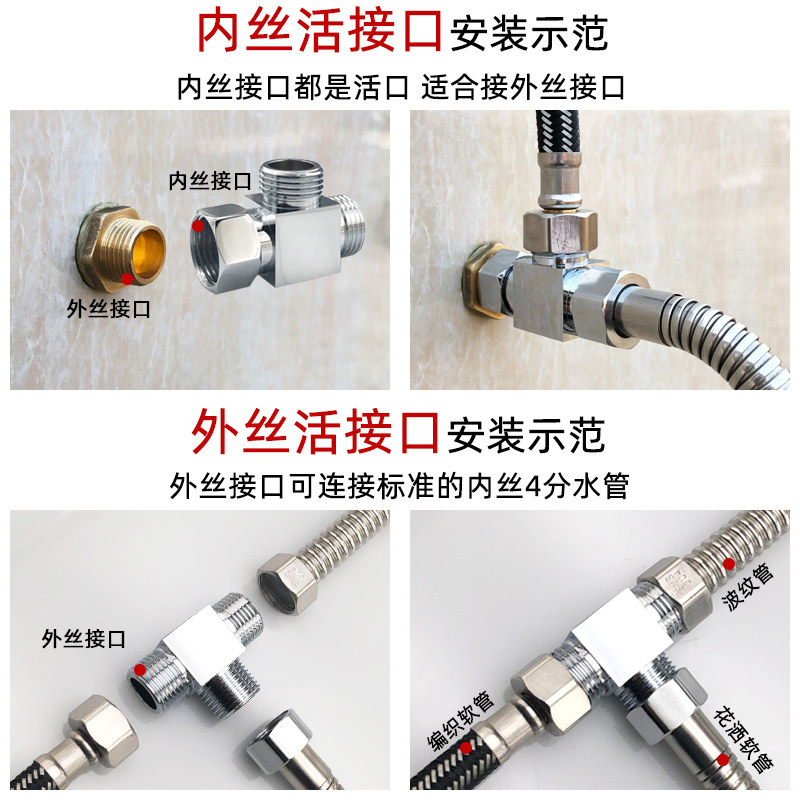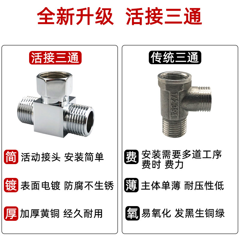 All copper belt live connection three-way joint water distributor angle valve one in two out water heater water pipe four-point inner wire water separation valve