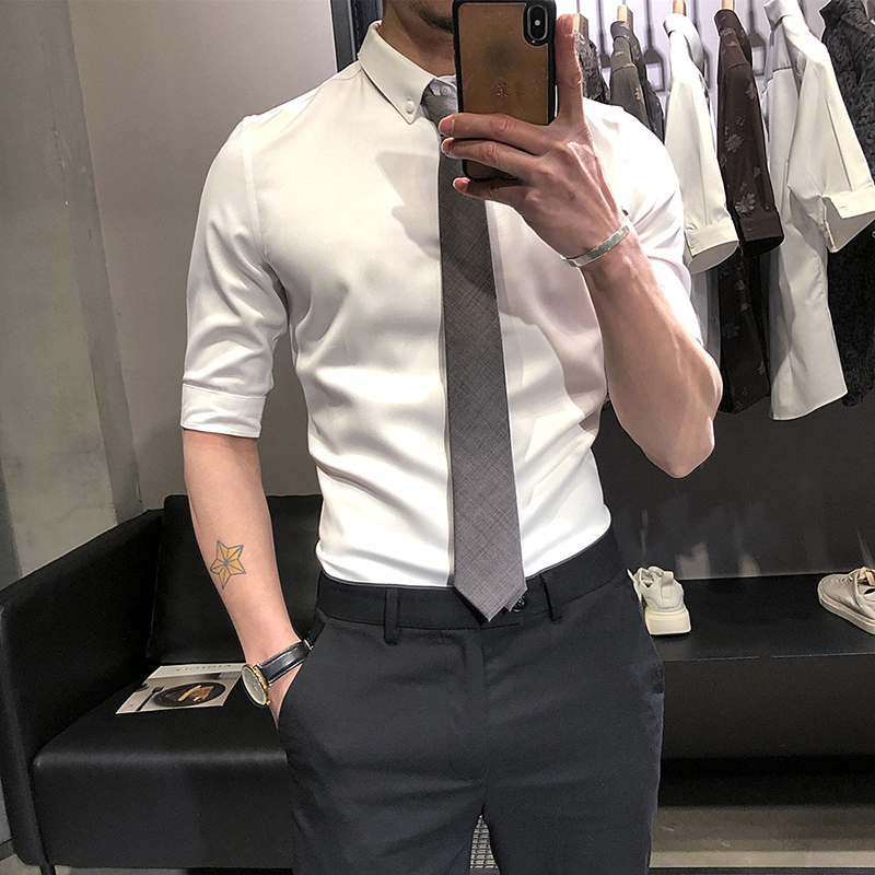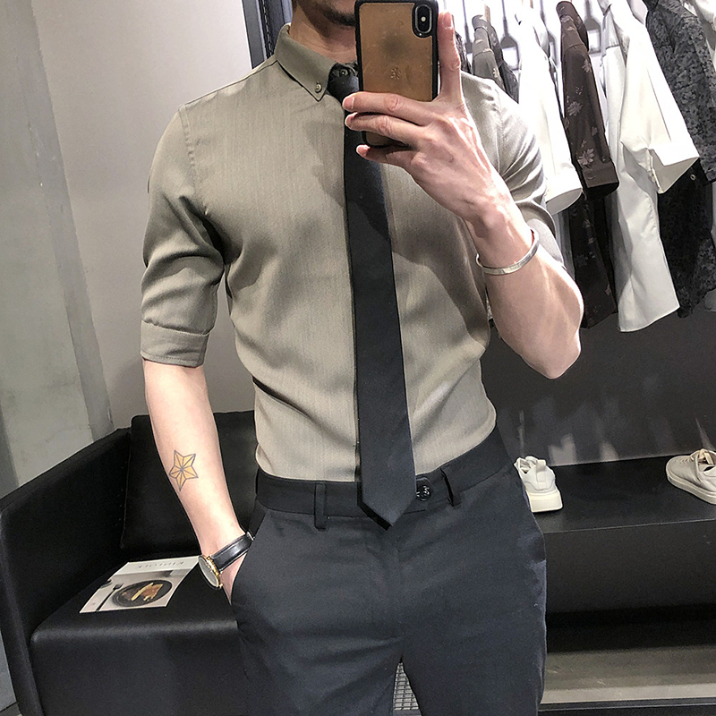 Summer Shirt Man Short Sleeve High End Free Ironing 70% Sleeves Pure Color Men's Shirt Body Business Casual Yuppie Handsome Men's Clothing