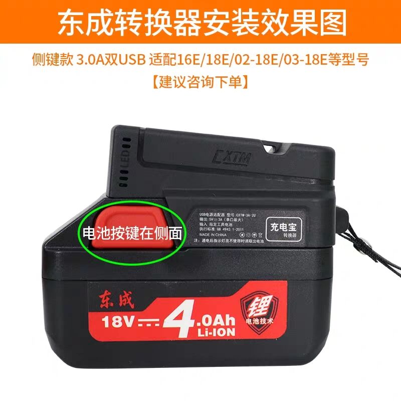 Dongcheng electric wrench battery charging converter Mobile phone charger dual USB interface conversion charging treasure