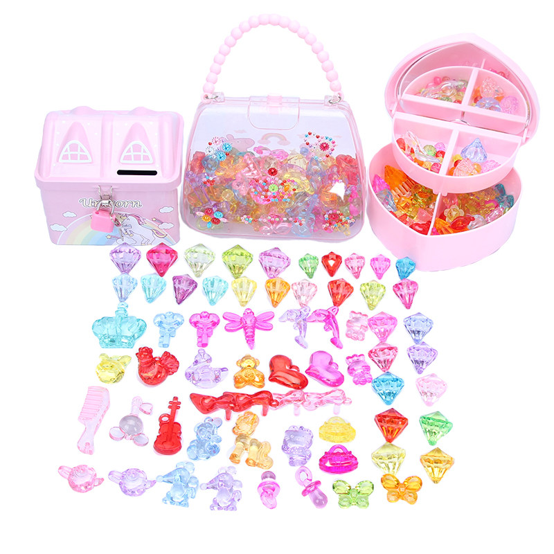 Toy Gem Princess Children Diy Handmade String Beads Plastic Crystal Large Diamond Seven Color Archaeological Excavation Treasure Chest box