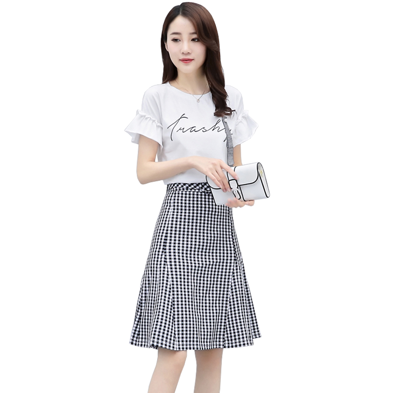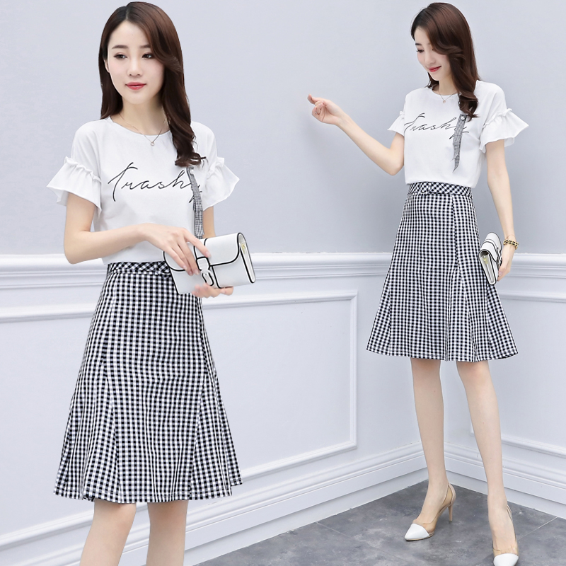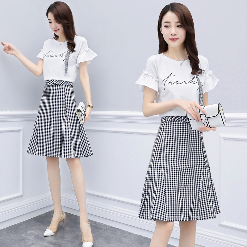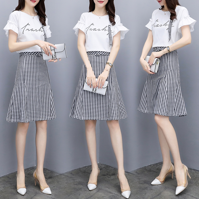 2022 Summer new large size Size Fat Mm Short Sleeve Ocean Dress Suit Women Foreign Pie Cut and Slim Cover two sets