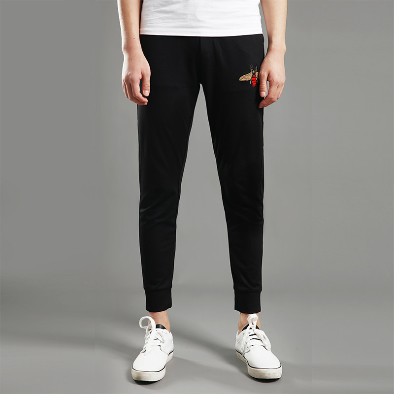 Summer tide brand Korean casual pants men's slim small feet elastic waist trousers bee beam pants men's sports pants