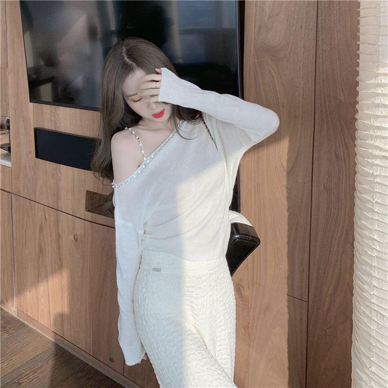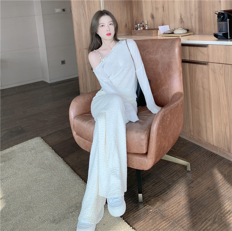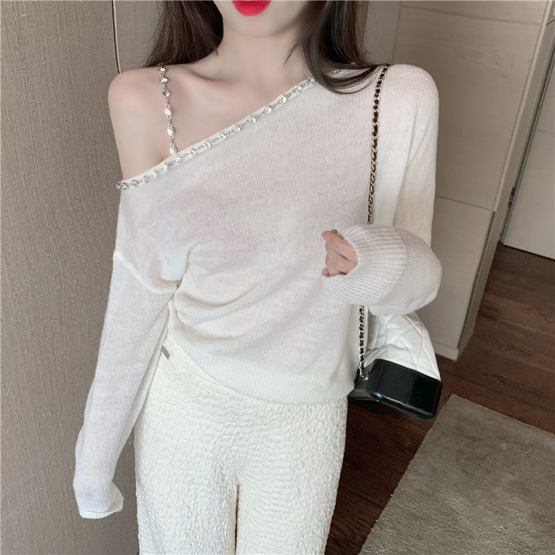 Spring new sexy loosens Shoulders Blouse Blouse Women Han Edition Casual 100 Lap Pure Desire for a T-Shirt Little Shirt Tide