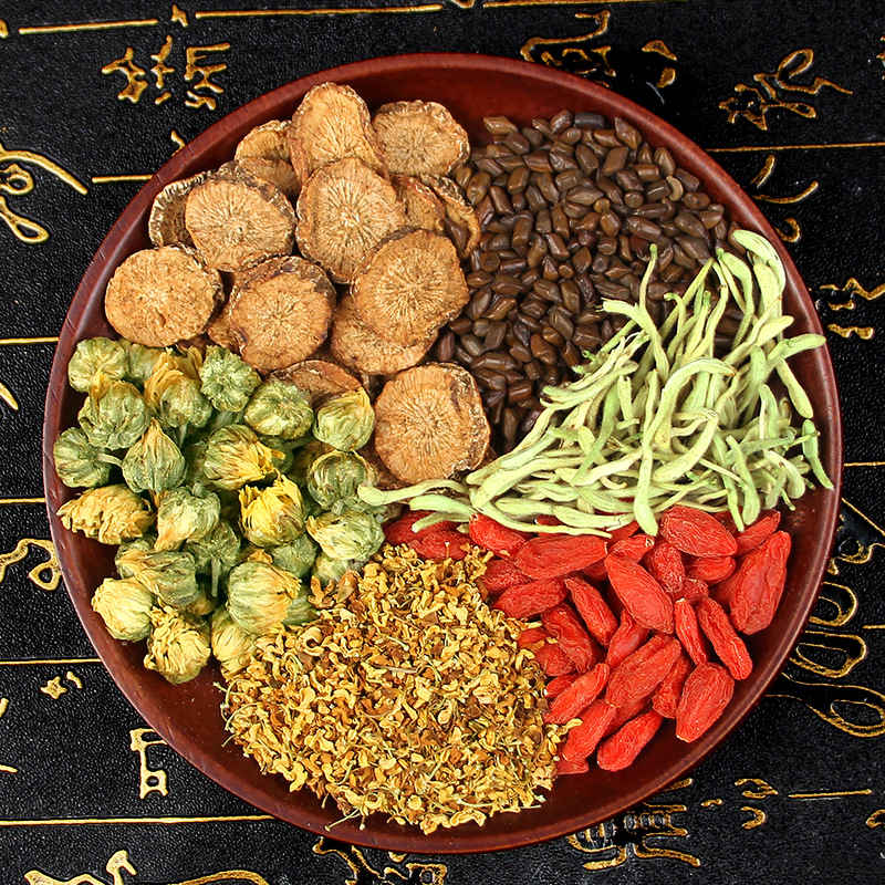 Cassia seeds, burdock, chrysanthemum, wolfberry, honeysuckle, osmanthus