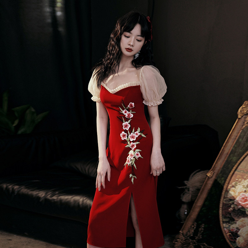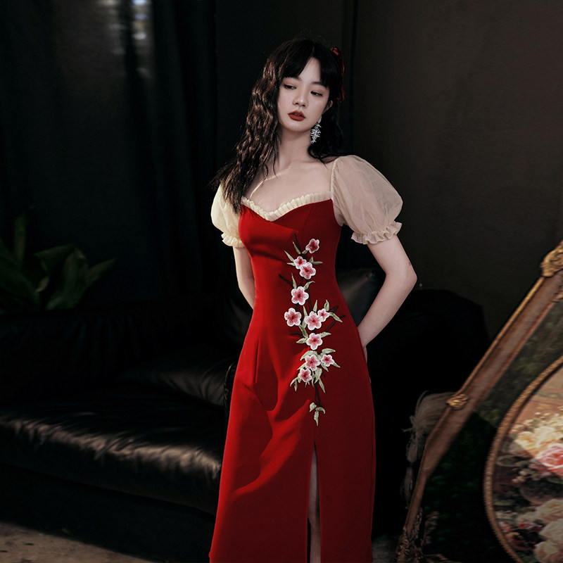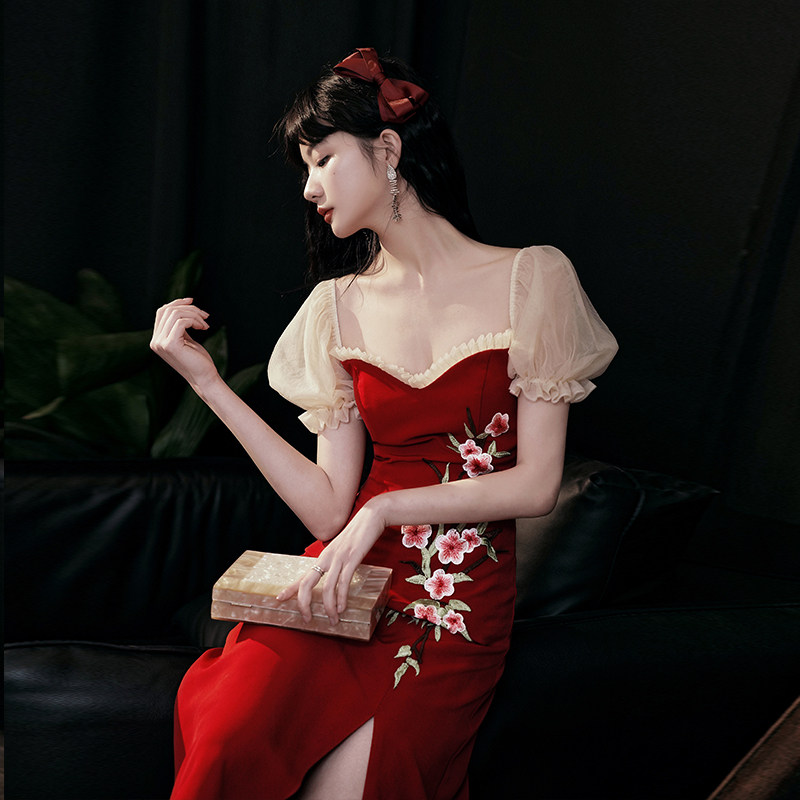 Fish tail toast bride 2022 new summer Chinese engagement dress red dress can be worn