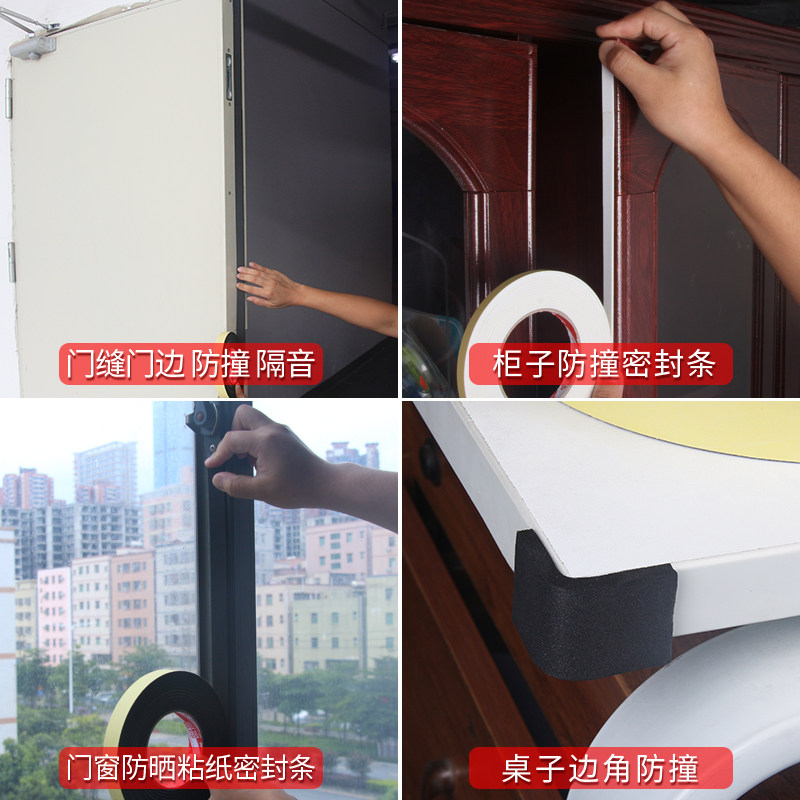 Black foam single-sided glue door and window anti-collision seal soundproof foam shockproof buffer sponge strip self-adhesive windproof strip