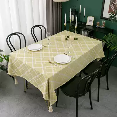 Tablecloth fabric Cotton and linen table cloth Nordic plaid net red jacquard literary rectangular household coffee table mat tablecloth