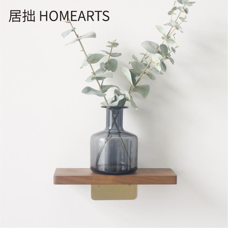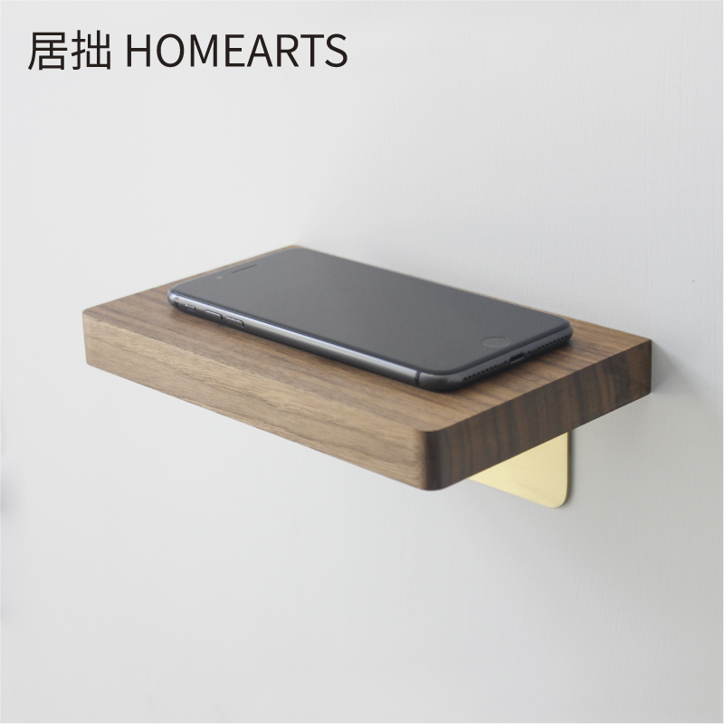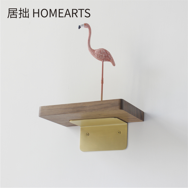 Juzhuo HOMEARTS Nordic log brass black walnut wood shelf solid wood one-word shelf wall plate support