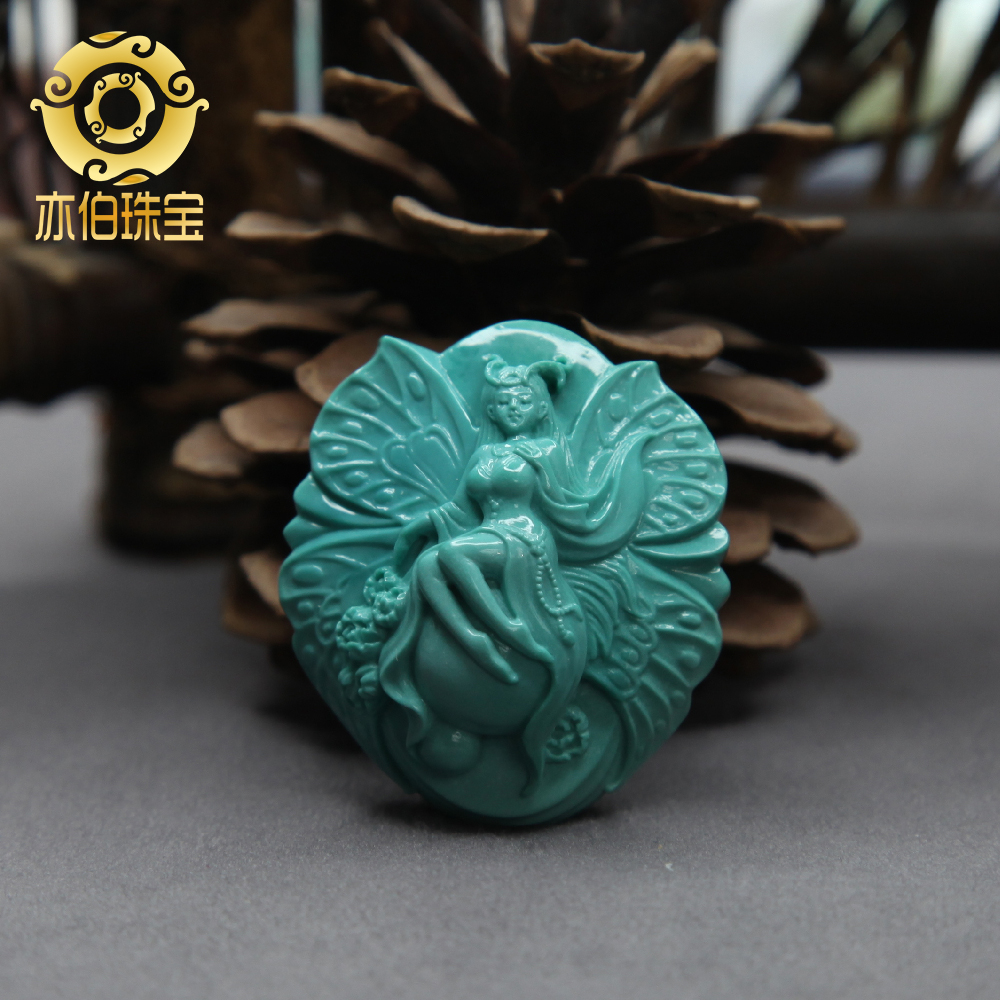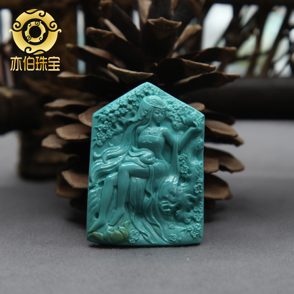 Yibo Natural Raw Mine High Porcelain Jade Turquoise Queen Loulan Huadan Beauty Series Necklace Pendant