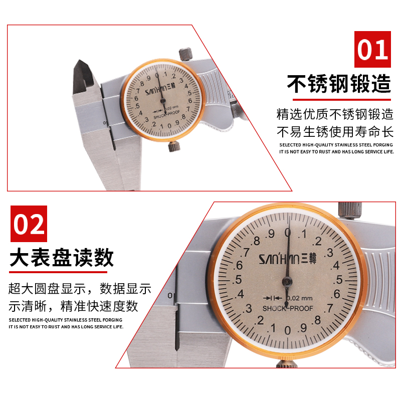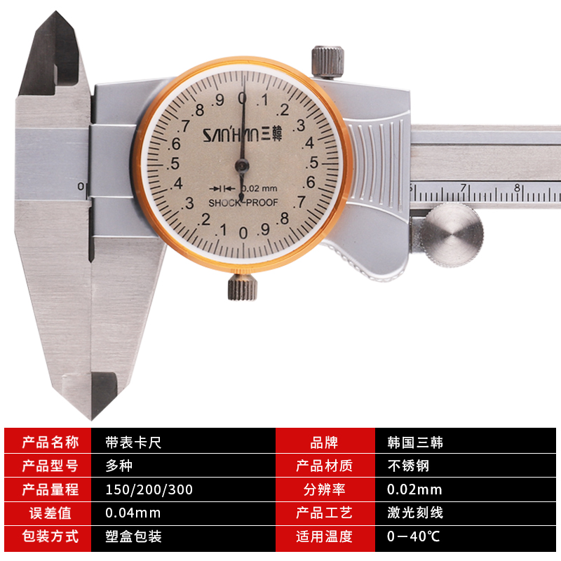 South Korea Sanhan belt table caliper 150 high precision stainless steel representative vernier caliper inner diameter measurement outer diameter