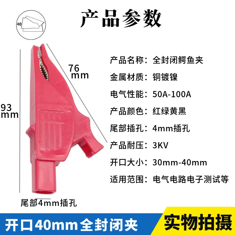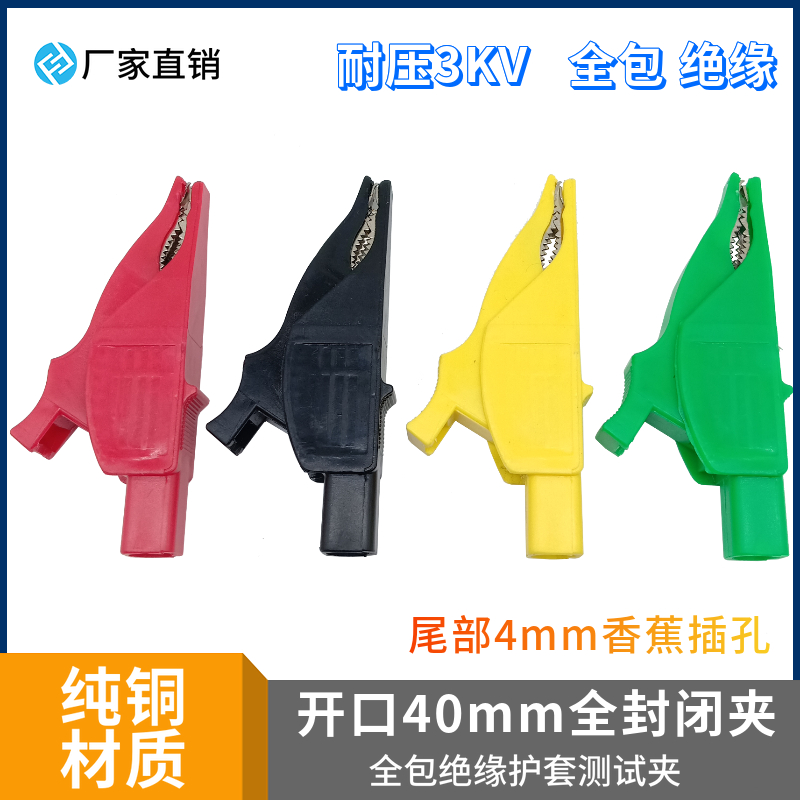 Pure copper opening 30-40mm totally closed clip large crocodile clip 100A test clip 4mm jack dolphin clip