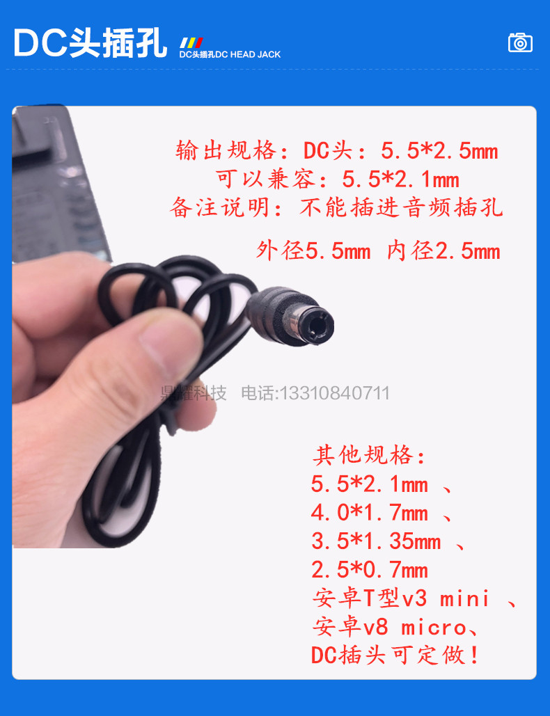 3V1A 5 5*2 5 mm plug 1m cable 3V2A 5 5*2 5 mm plug 1m cable 5V600mA 5 5*2 5