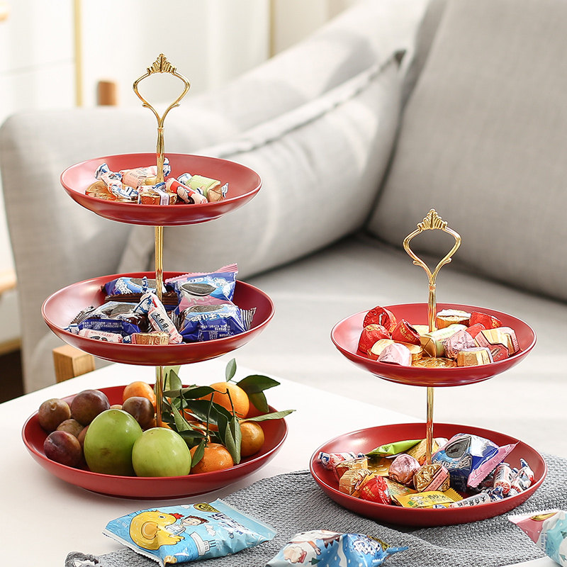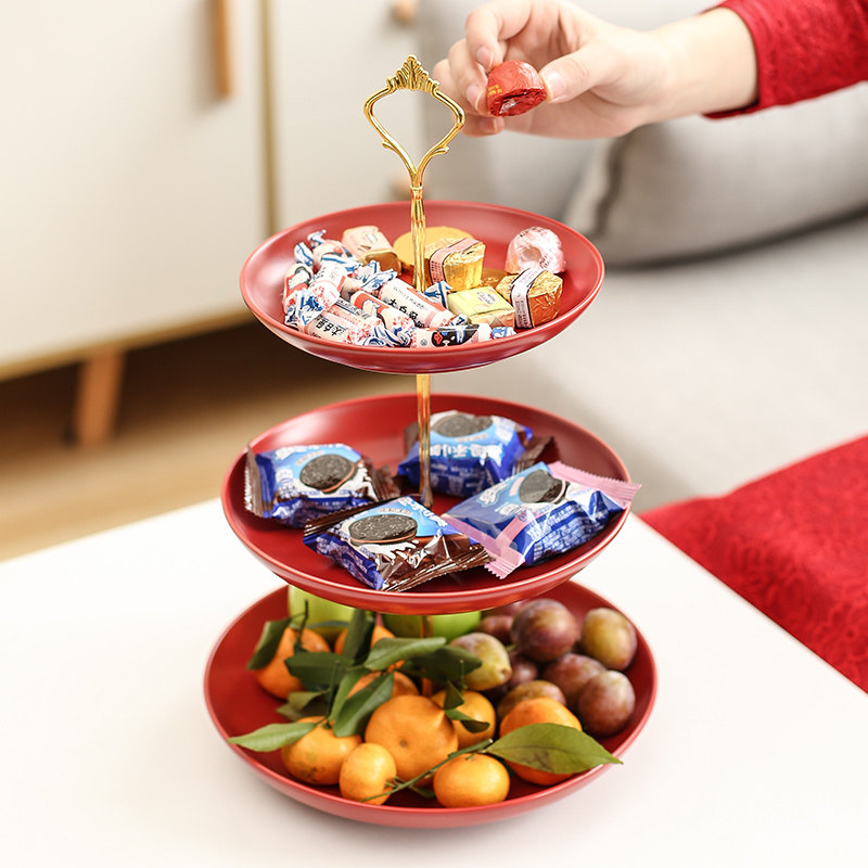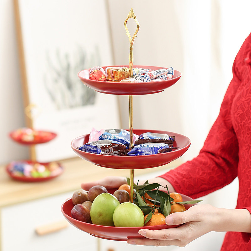 Wedding fruit plate red ceramic dried fruit plate living room home wedding wedding candy plate wedding coffee table three-layer happy fruit plate