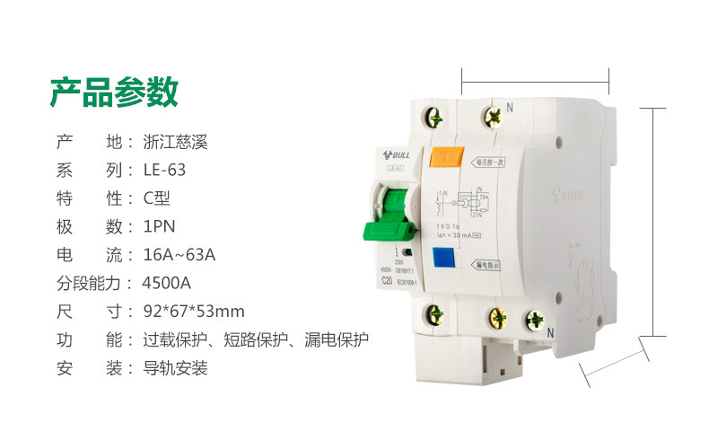 Bull Earth Leakage Circuit Breaker 1P 2P Home Electric Brake Hollow Open Drain 63a Air conditioning Overload Total Switch Air Switch