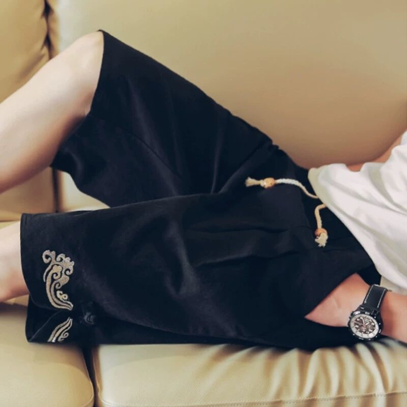 Summer Chinese style flax shorts men loose beach pants fat large size trend five-pant cotton pants