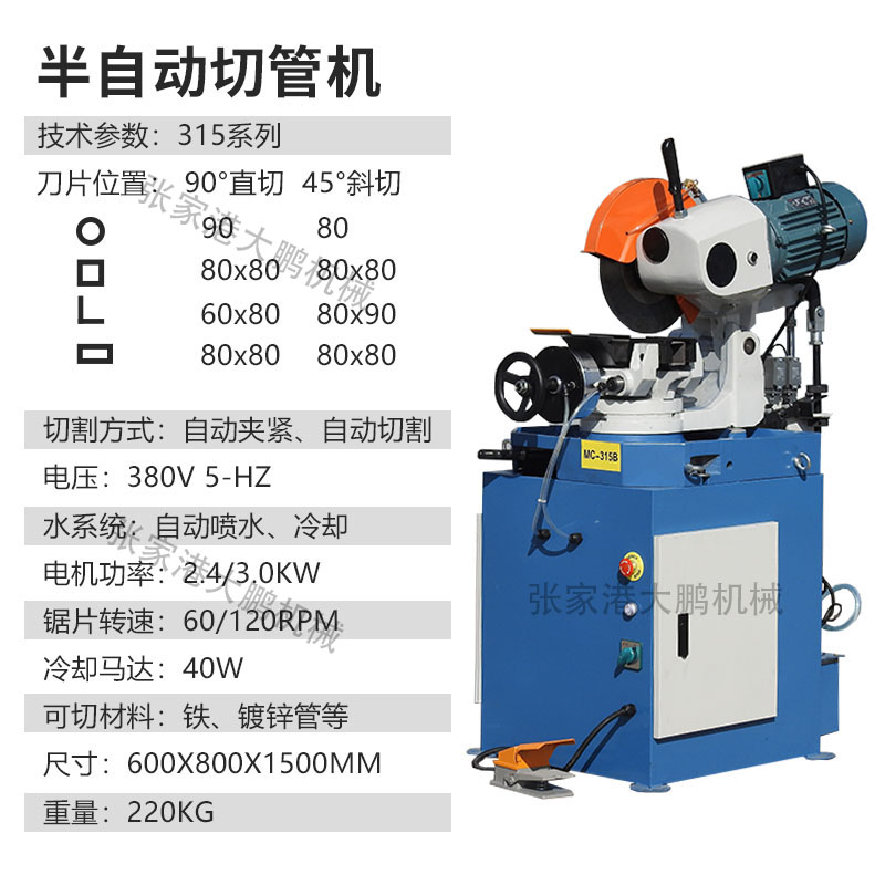Cutting machine 45 degree angle full semi-automatic pipe cutting machine manual steel pipe cutting machine burr-free metal circular saw water cutting machine