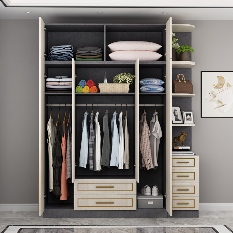Wardrobe Light luxury bedroom combination storage cabinet Modern simple small apartment wardrobe Nordic multi-functional new Chinese cabinet