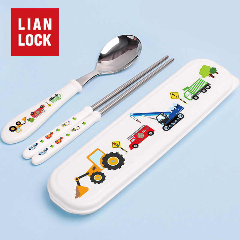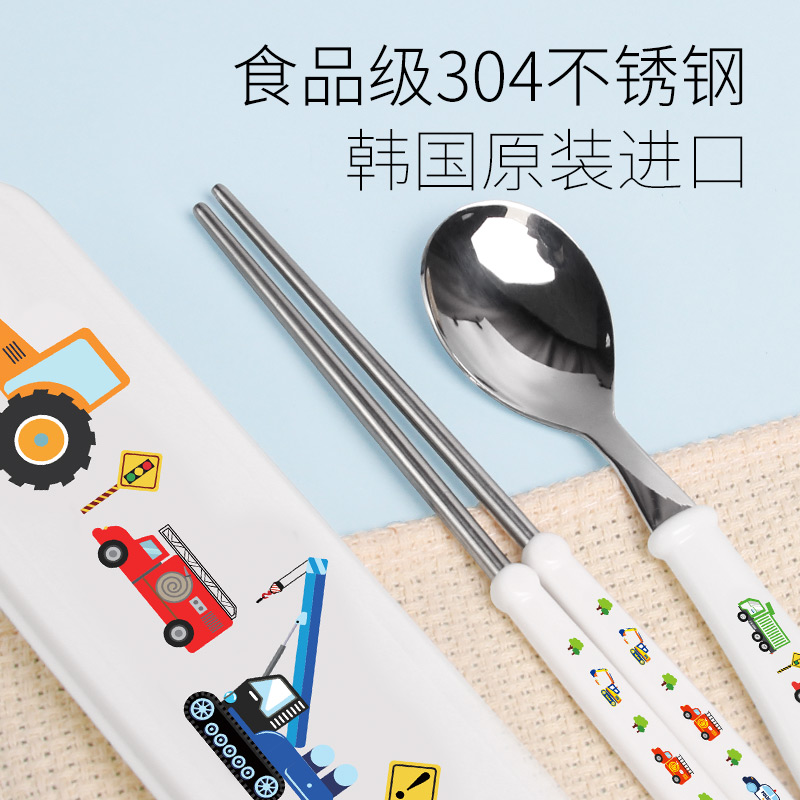 Interlocking children's tableware 316 stainless steel chopsticks spoon set fork portable primary school student three-piece set spoon storage
