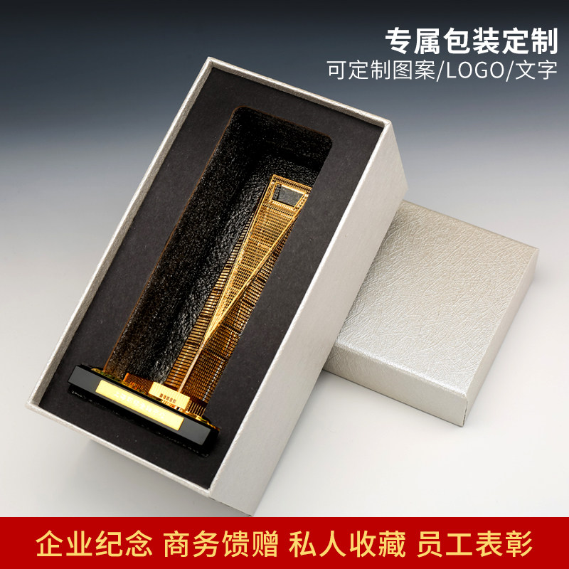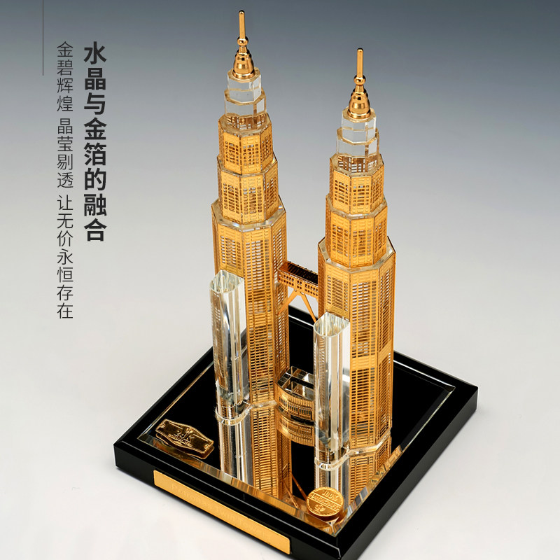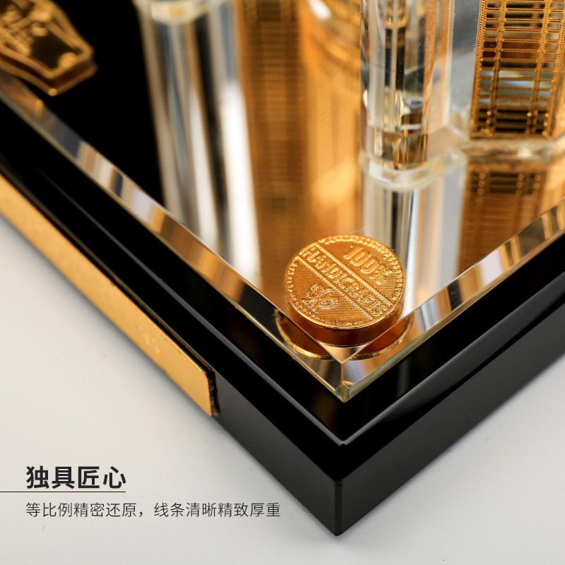 Ifing craftsmen high-grade souvenir building model ornament custom crystal inlaid gold and silver foil building model custom